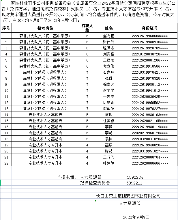 安圖林業有限公司 2022年度秋季定向招聘高校畢業生的公告